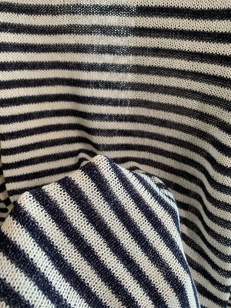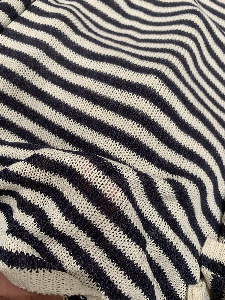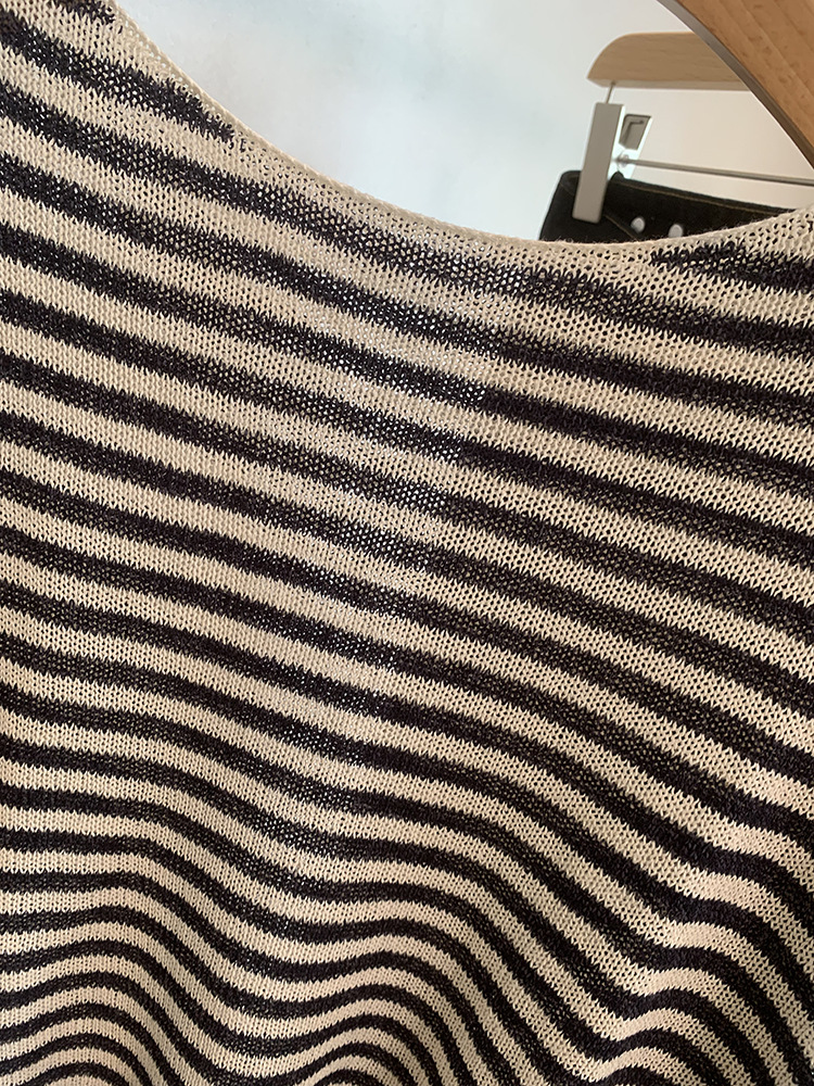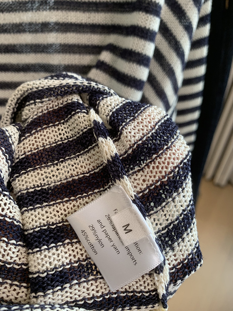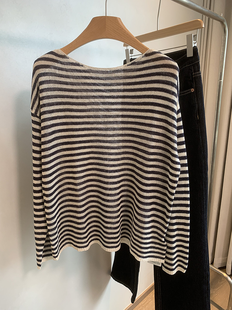 Japanese Washi Paper Yarn ~ Beautiful, Refreshing, and Relaxed Feel Lazy Off-Shoulder Long Sleeve Striped Base Shirt Cover-Up