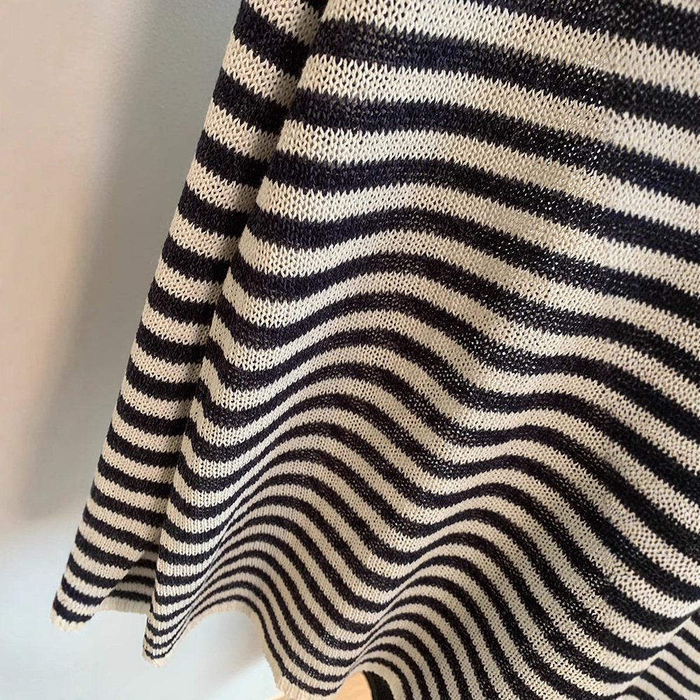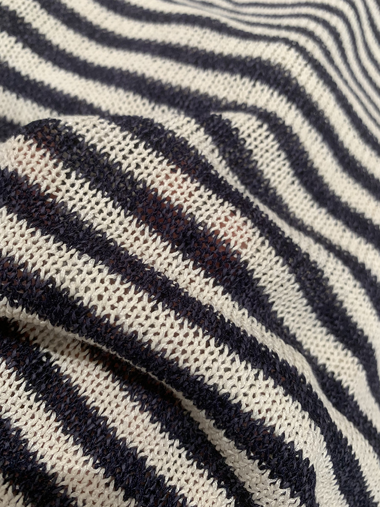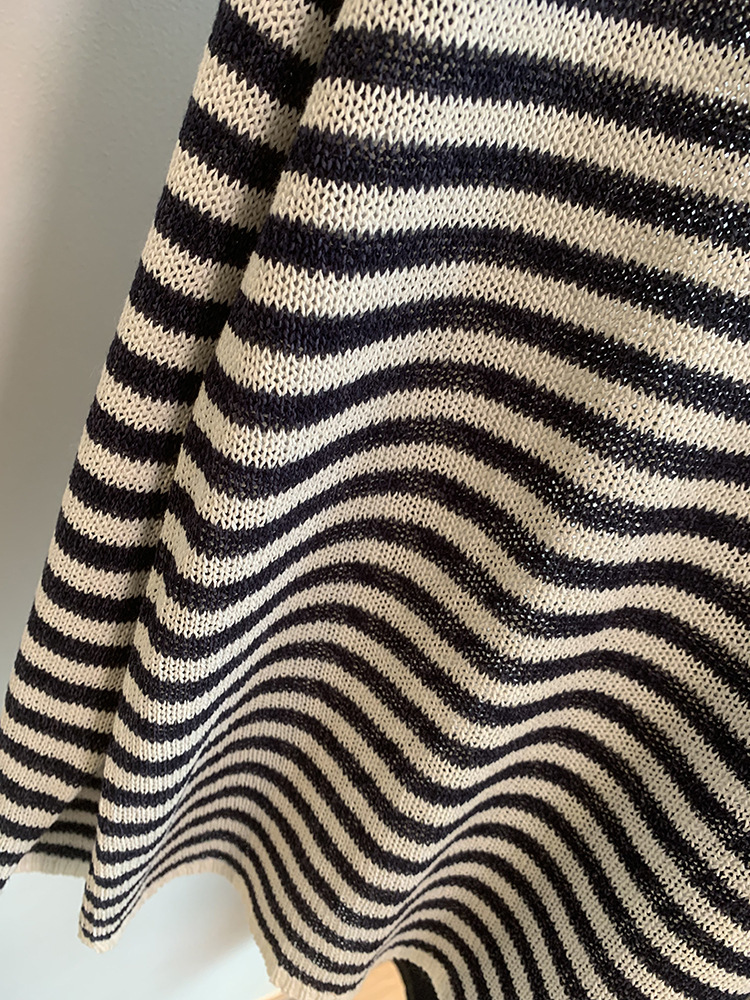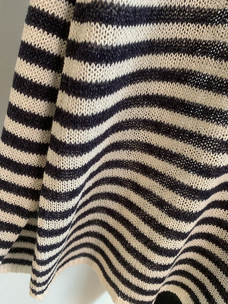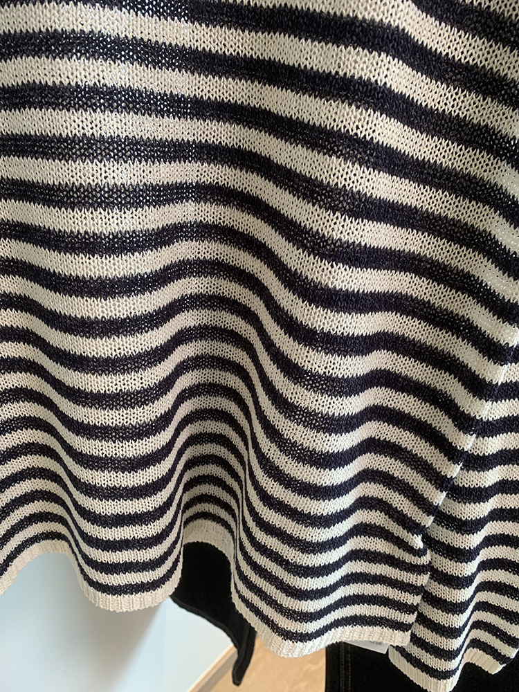 Japanese Washi Paper Yarn ~ Beautiful, Refreshing, and Relaxed Feel Lazy Off-Shoulder Long Sleeve Striped Base Shirt Cover-Up